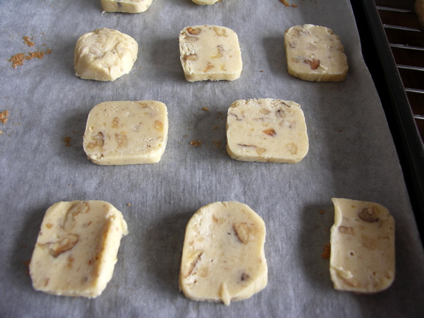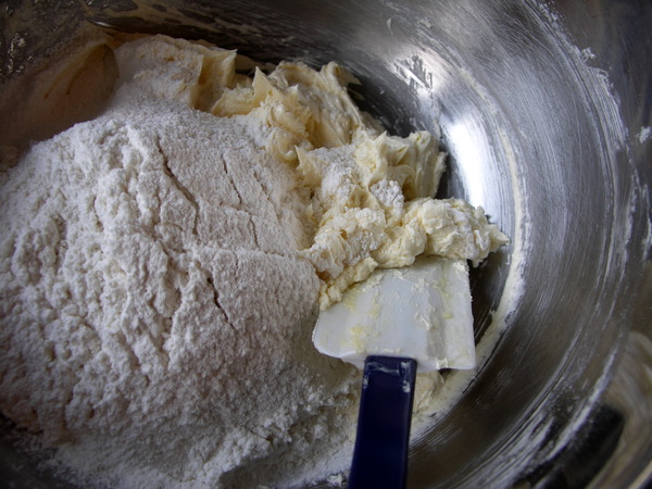 篩入低筋麵粉與泡打粉攪拌至均勻(此動作要一邊翻一邊壓),最後加入核桃碎拌勻。