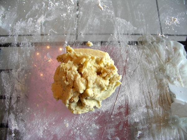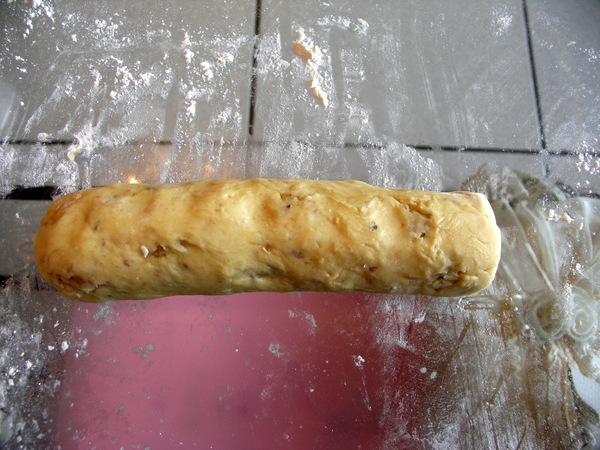 2 將麵糰取出,整形為5×15公分的長條用保鮮膜包好,放入冰箱冷藏約3小時後取出