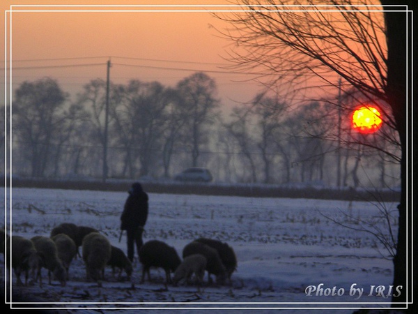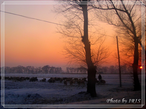 日落、雪地、牧羊人、松樹、羊咩、漸層的天空,這畫面美的太美了都不知怎麼形容才適合
