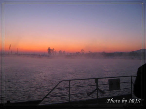下車後搭上擺渡船IRIS跟白先生今晚夜宿曾通村,曾通位於松花江中間的島上