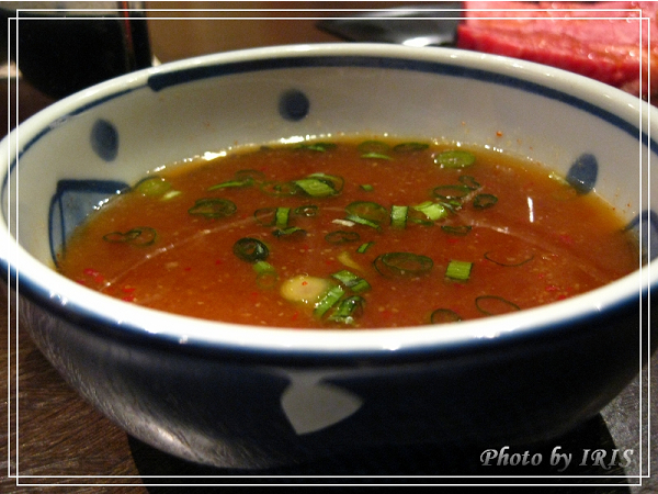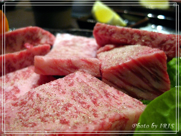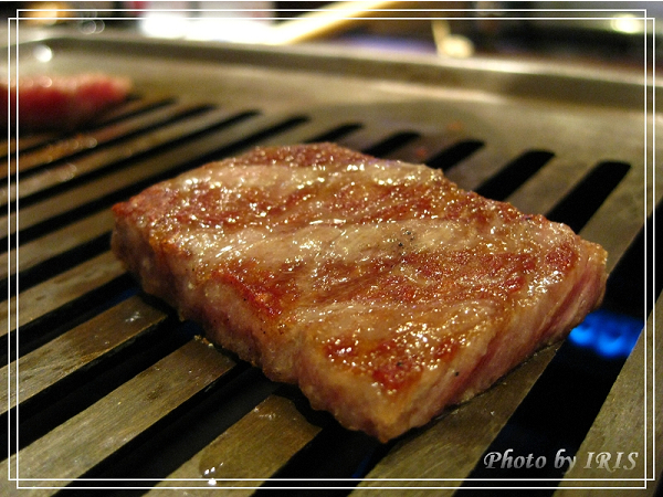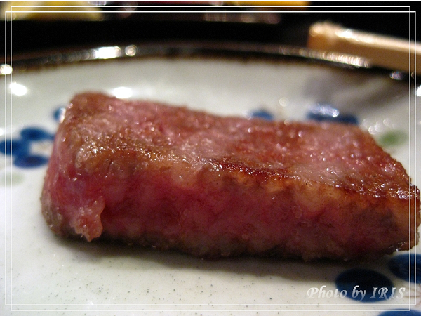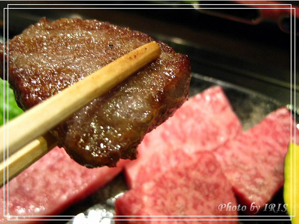 烤5分熟的和牛肉沾著醬之入口,香氣十足真的太美味了
