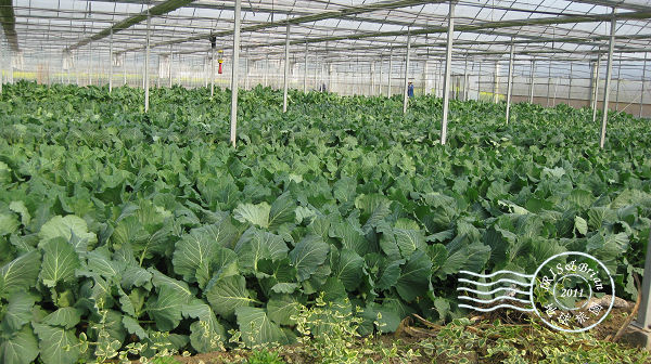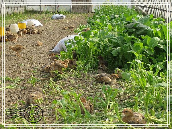 這裡的土雞都是吃青菜跟玉米長大的,小雞養在菜棚裡地上種的青菜任牠們吃