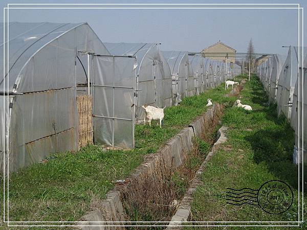 一部份的羊咩咩在大棚門口曬太陽,看起來是不是很像看門"羊"XD