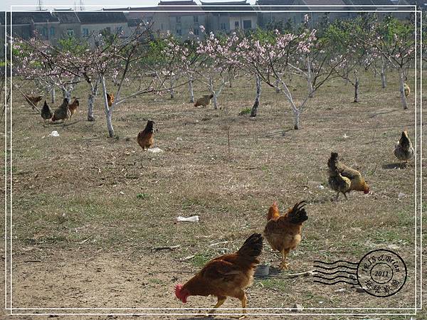 大雞完全放養在室外,而且還是在櫻花樹下真是幸福的雞啊