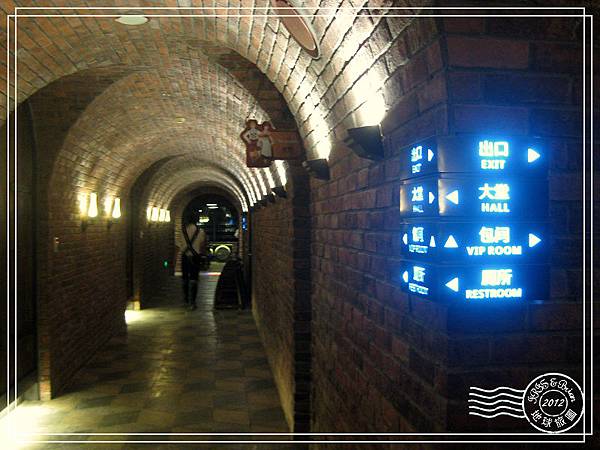 像迷宮一樣的地窖在每個轉角都有方向指示燈,為客人貼心提醒