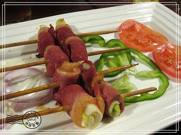 串烤鴨胸煙燻的肉片包裹著大蔥,多汁的口感,經典
