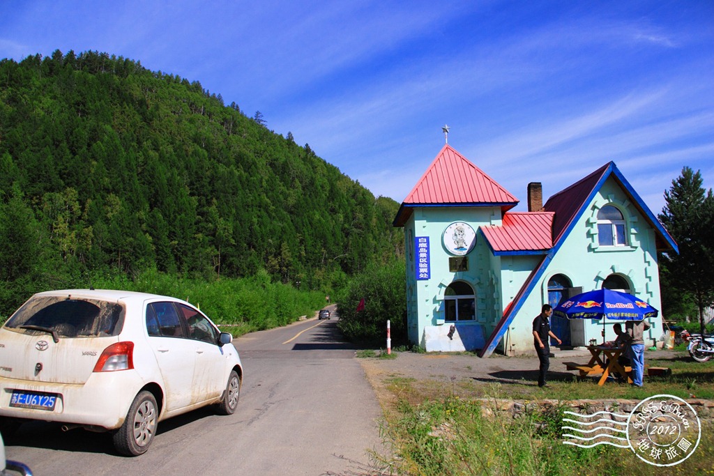 莫耳道嘎國家森林公園內的查票,白先生交涉後門票價格從130元砍到80元。▼