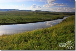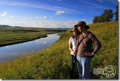 騎馬後來到在臨江的額爾古納河邊,遠眺對岸俄羅斯村莊。▼