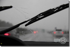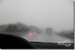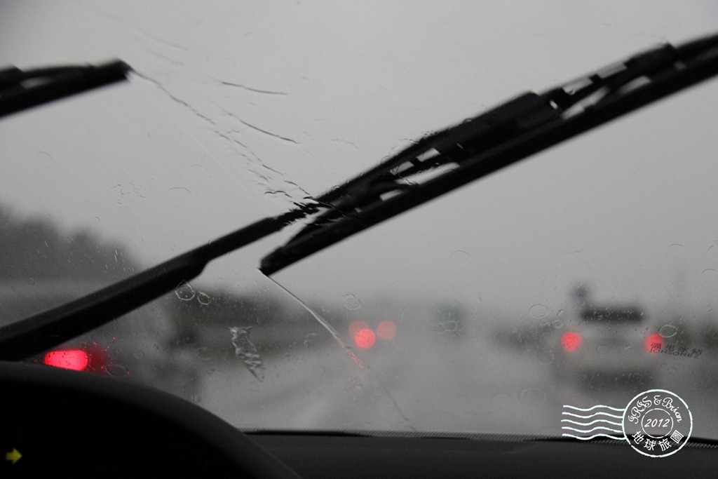 在高速公路上雨水大到幾乎所有車輛都靠邊停下來,